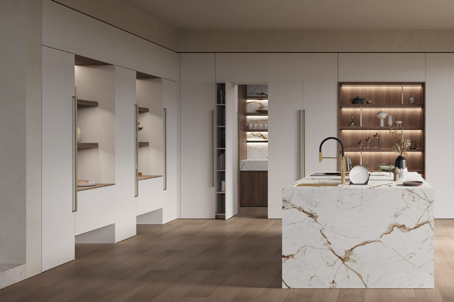 Les cuisines quiet luxury allient systèmes dissimulés, façades sans poignées et finitions mates. Harmonie, artisanat et innovation définissent des intérieurs sophistiqués et élégants, où chaque geste reste subtil et raffiné.